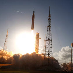 Headed for the first crewed moon mission since 1972, the NASA spaceship enjoys a spectacular liftoff with four astronauts aboard. A toilet issue was the only hiccup...
